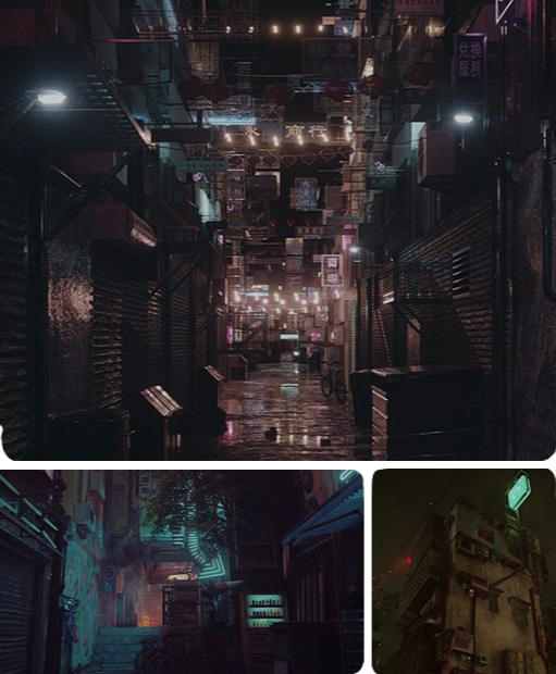 ㅤㅤ— THE RABBIT HOLE:ㅤㅤㅤEl gran distrito que se encuentra sumergido bajo las sombras de los grandes edificios de la ciudad. Conocido como epicentro de la villanía y residencia de los mayores enemigos de los cuentos. Callejuelas estrechas con neones deteriorados, arquitectura estancada en el tiempo y negocios de dudosa moral se entretejen como un espejo oscuro y distorsionado del resto de la urbe.
