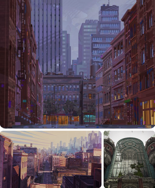 — Ⓒ créditos ilustración Welcome to Arcadia: Eddie Mendoza , https://eddie.artstation.com/projects/lxPNqY— Ⓒ créditos ilustraciones Nuevo Camelot: Michal Lisowski , https://www.instagram.com/p/CjlqJeCqSeJ/?img_index=1, screenshots película Into the Spiderverse.— Ⓒ créditos ilustraciones The Woods: Michal Lisowski , https://www.instagram.com/p/CjVAENHKFe7/?img_index=1 , Meeti , https://www.instagram.com/p/Ct_s9FLO24Q/?locale=es , screenshot videojuego Dishonored 2.— Ⓒ créditos ilustraciones The Rabbit Hole: screenshots videojuego Stray.